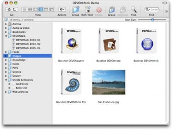 Es un bloc de notas, es un archivador de documentos, un organizador de correo electrónico, incluso puede organizar información proveniente de Internet, y todo se puede encontrar con facilidad mediante RSS. No importa el formato, sea HTML, XML o PDF, imágenes y hasta vídeos, DEVONthink lo organiza todo.